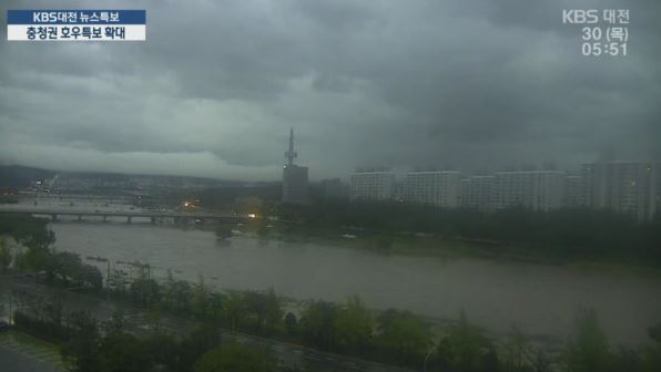 대전.세종.충남 지역에 29일 밤 ~30일 새벽 사이에 호우 특보가 내려지고 천둥,번개를 동반한 폭우가 쏟아져 인명피해까지 발생하였다. 주택과 도로 기차 선로 까지 잠기는등 비 피해가 이어지고 있다.