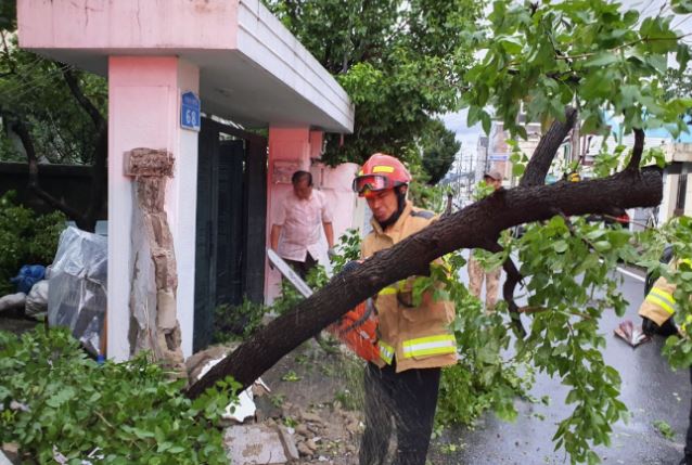 대전시와 5개 구청은 이날 호우 경보가 발령되자 비상 2단계 근무에 들어 갔고 대전시 주택 85건 동구 천동지구대 앞 도로등 7곳 베스티안우송병원 응급실 침수 문화동에서 토사 붕괴 신고 접수되어 모두102건으로 크고 작은 비패해가 접수되었다