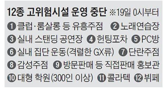(사회적거리두기2단계 전국확대 고위험시설물폐쇄)