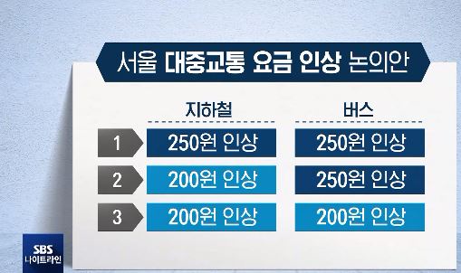 서울 지하철 버스요금 인상>