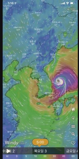 현재 windy 어플로 확인된 태풍 마이삭의 경로입니다. windy 어플은 체코 기상청 어플로 이번 장마부터 시작해 태풍의 경로 태풍의 마이삭의 발생까지 한국 기상청보다 더 정확하게 알려줘서 인기 있는 기상 어플입니다. winy 어플로 확인해본 결과 우리나라 기상청과 마찬가지로 9월 3일 부산을 관통하여 9월 4일에는 우리나라 영향권에서 벗어날 것으로 예상되고 있습니다.