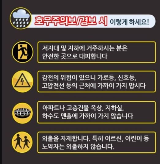 1. 저지대 및 지하에 거주자분들은 안전한 곳으로 대피