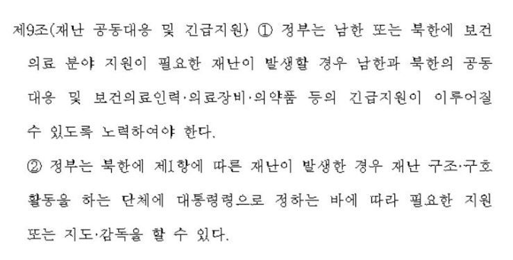 남한 의료 인력 북한 긴급지원 가능 법안?