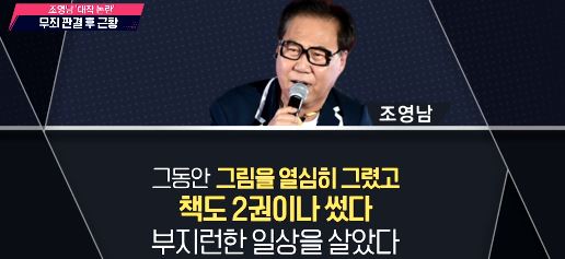 조영남은 대작 논란이 일어난 후 5년간 그림도 열심히 그렸고 책도 2권이나 쓰면 이제껏 살아온 인생이 아닌 다른 인생을 살았으면 딸(조은지)이 내 옆에서 많이 도와줘 큰 힘이 되었다고 5년간의 근황을 짧게나마 밝혔다.