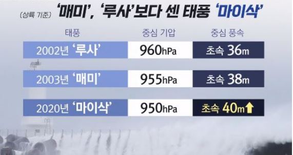 현재 우리나라는 9호 태풍 마이삭의 영향으로 엄청난 피해를 입었습니다. 부산에서는 인명피해까지 발생하였으며 강원도 역시 대부분 어민들의 선박 붕괴, 과수원, 해안 일대침수피해 등 아직 복구조차 하지 못한 상황에서 이번에는 더 강력한 태풍 하이선이 관통할 것을 예상되고 있는 상황입니다. 우리나라는 현재 코로나 19의 확 진세의 증가로 자영업자들의 생계곤란 시민들은 빈곤해지고 있으며. 대출 증가, 신용카드 사용 증가 현실을 점점 더 어려워지고 있는 상황입니다. 이번에 태풍 하이선의 피해까지 더해질 것으로 예상되고 있어. 근본적인 대책과 피해 예방을 위해 노력하여야 될 것으로 보입니다.