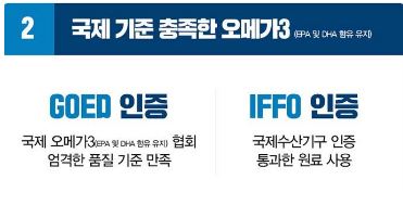 장점: 국제 기준 충족 오메가 3GOED, IFFO인증
