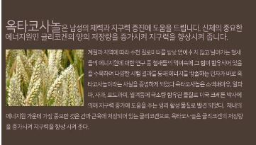 옥타코사놀은 남성의 체력과 지구력 증진에 도움을 주며 신체의 중요한 에너지원인 글리코겐의 양의 저장량을 증가시켜 지구력을 향상시켜준다.