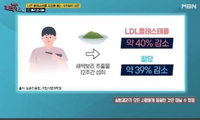 새싹보리 12주간 섭취 콜레스테롤 약 40%감소 혈당 39%감소