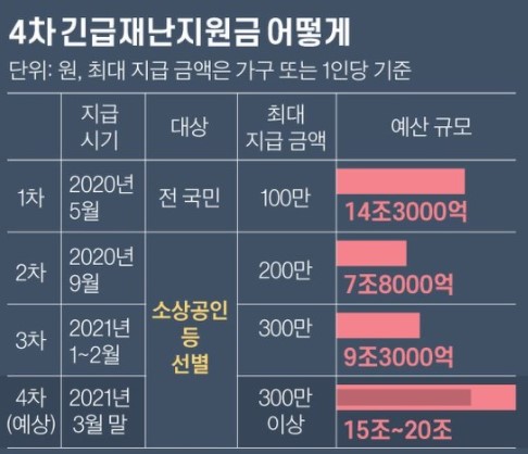 2021/02/24 - [이슈] - 4차재난지원금 지급일 지원대상 지원금액