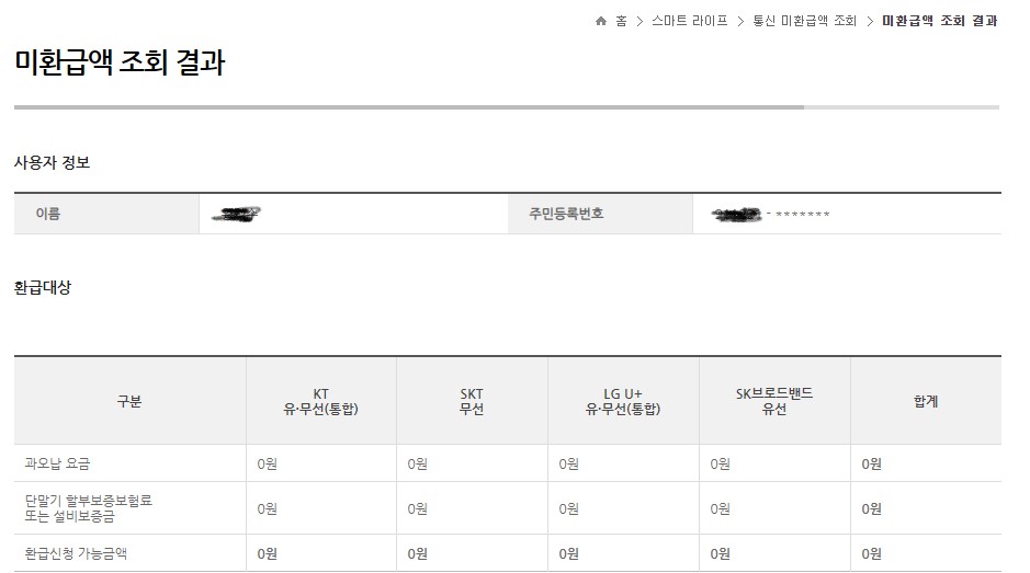 아래에서 통신비 미 환급금 조회 및 신청하실 수 있습니다