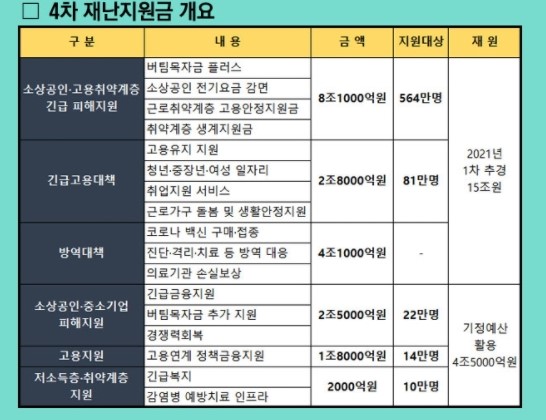 오늘 국회 타결을 통해 4차 재난지원금의 대상과 지급금액 신청일이 구체적으로 발표되면서 큰 화제가 되고 있습니다. 아무래도 이번 4차 재난지원금 역시 소상공인의 중점으로 지원되고 있으며 3차 재난지원금의 지급이 끝나지도 않고 지급함에 있어 선거용 재난지원금이 아니냐는 이야기까지 나오고 있는 상황입니다. 자세한 이야기 아래에서 다뤄보겠습니다.