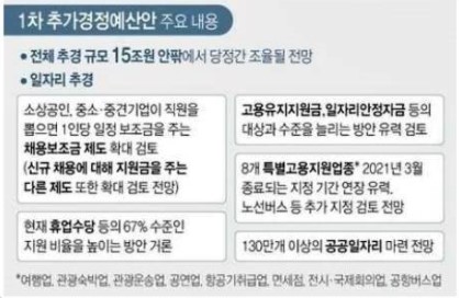 위에 말한것 이외에도 기획재정부는 소상공인 저리융자를 1조원 확대하고, 폐업 소상공인을 위한 브릿지보증 5000억원을 신설하기로 했습다. 아울러 경영 위기 버스업체 신용보증에 1250억원을 공급합니다.