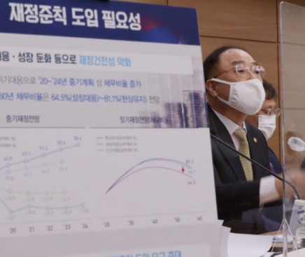 강승준 기재부 재정차관보는 5일 사전브리핑에서 "코로나 19 대응을 위한 전 세계적 확장재정으로 주요 선진국은 큰 폭의 재정적자가 전망되나 한국은 상대적으로 양호한 수준"이라고 밝혔다. 국제통화기금(IMF)에 따르면 2020년 선진국은 GDP 대비 13.3%의 재정적자가 전망되는데, 한국은 3.1%라는 점을 들어서다.