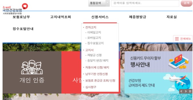 [국민건강보험공단 홈페이지]