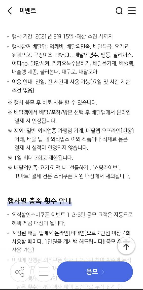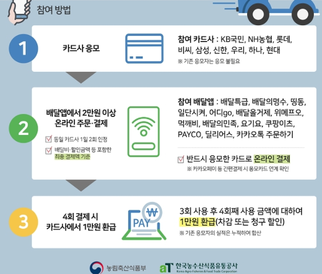 9월 15일부터 다시 외식 쿠폰 사업이 시작되었습니다. 이전과 마찬가지로 2만 원 이상 4회 카드를 사용하면 1만 원이 환급되는 이 외식 쿠폰 신청하는 방법과 어떻게 이용할 수 있는지, 어떤 배달앱 사용할 수 있는지 소개합니다.
