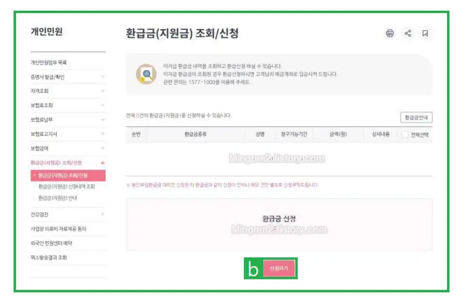 - 환급금 조회/신청 (하단메뉴)