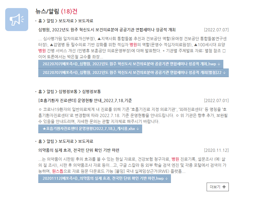 건강보험 심평원 검색 > 원스톱 진료기관 검색 > 뉴스/알림 호흡기환자진료센터 운영현항 클릭