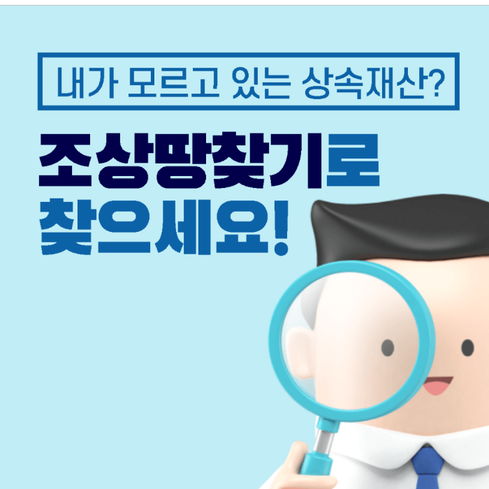조상땅 찾기란 조상님이 살아 생전에 소유 하였던 땅을 지적정보를 통해 상속인에게 알려주고 재산권을 행사 할 수 있도록 도움을 주는 서비스라고 합니다 토지 상속인이 1959년 12월 31일 이전 사망하였을 경우 장자 및 호주 승계자가 1960년 1월 1일 이후 사망 했을 경우 배우자나 직계비속이 신청할 수 있습니다.